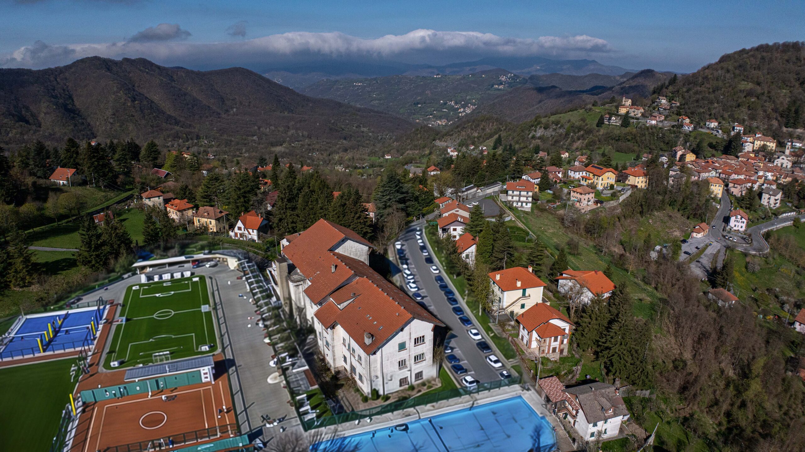 Il complesso immobiliare, situato nell’entroterra ligure vicino al centro storico, è