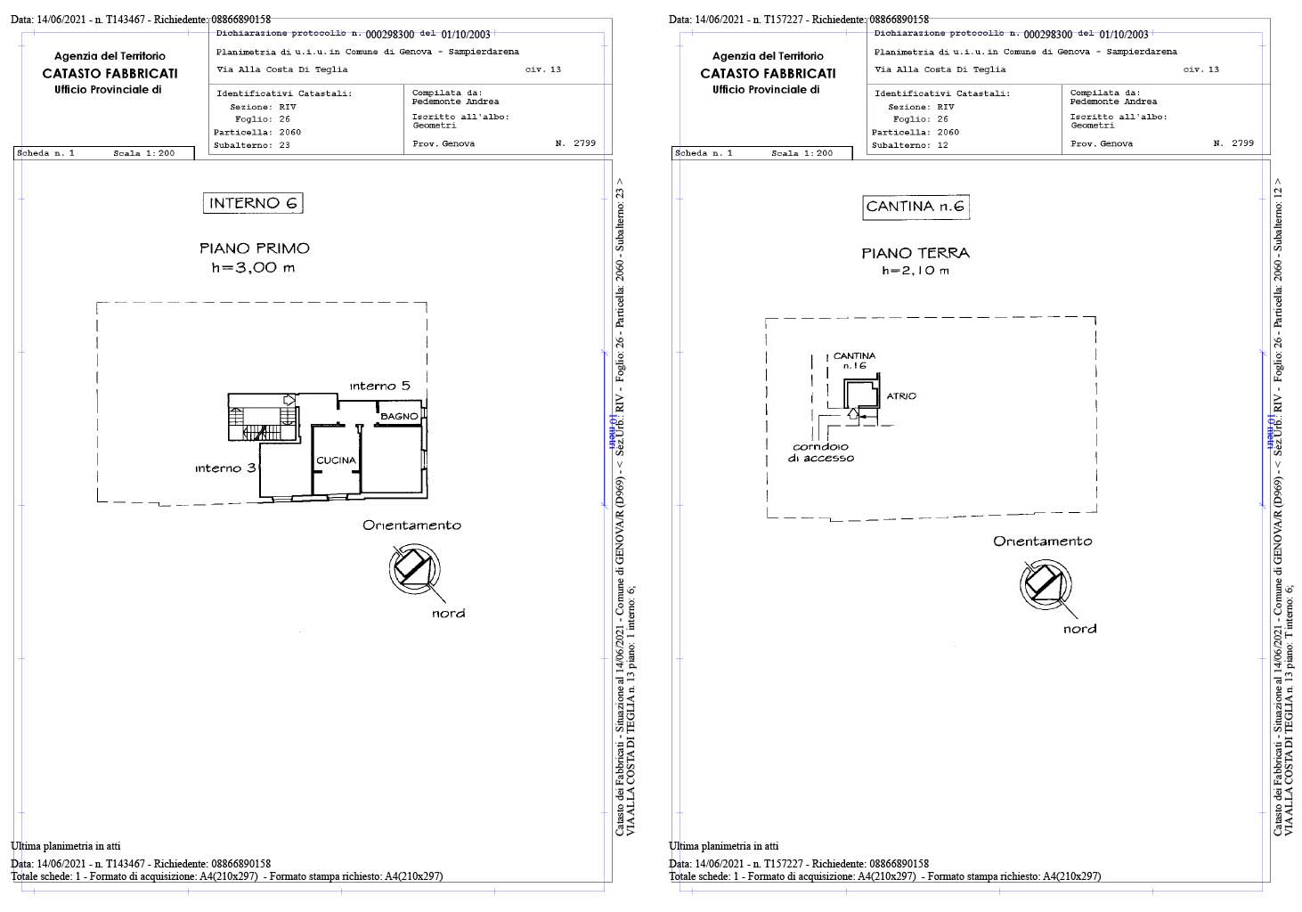 Via Costa di Teglia 13/6 con cantina