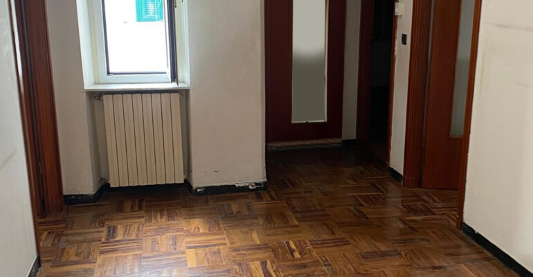 Situato al quinto piano con ascensore, l’appartamento è da ristrutturare e offre un ampio ingresso alla genovese, due camere, cucina e un bagno.