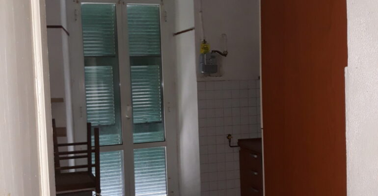 Situato al piano terra con ascensore, l’appartamento è da ristrutturare e offre un ingresso adibito a soggiorno, due camere, cucina, bagno e un giardino.