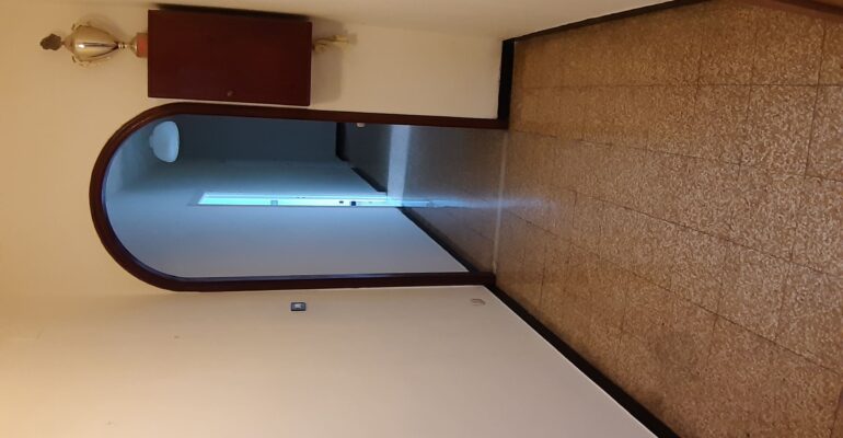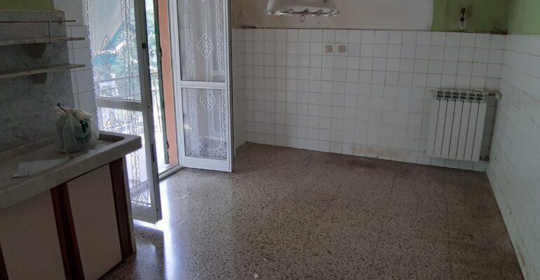 Situato al quarto piano con ascensore, l’appartamento da ristrutturare si compone di un lungo ingresso corridoio, tre camere, cucina con lungo terrazzo e un bagno.